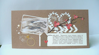 Пролетен привет от мен :)!Скоро не съм се появявала тук поради редица не радващи причини и съпътстващо кофти настроение, но и хубавото и лошото минава и ето ме тук да ви покажа една наскоро направена картичка . "Дизайнерската хартия " e от опаковка на био шоколад от периода ми на специална "почти" кето диета :). И цената беше като на опакован в дизайнерска хартия шоколад, но пък добре ми се вписа в тази картичка . Ама хубави опаковки им правят на тези скъпи шоколади,с акварелен ефект, как да не си купи човек- хем био, хем хваща очите, хем използваш повторно опаковката (това го загрях като изядох шоколада ).Успях да покрия надписите успешно с декорацията и ето го крайния резултат .Купих си и още един, май по-скоро заради опаковката и успях да я използвам в друга картичка, която ще ви покажа скоро.